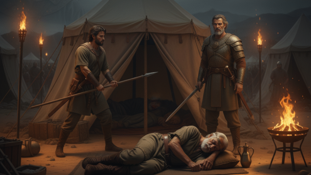- El Pilar del Trono: Mientras Saúl fue rey, Abner fue su mano derecha militar. Estuvo presente cuando el joven David se enfrentó a Goliat (1 Samuel 17:55) y fue el responsable de la seguridad del rey (aunque David y Abisai lograron colarse en su campamento mientras dormía, en 1 Samuel 26).