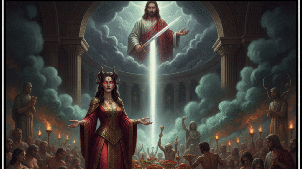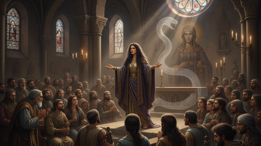 • La Reprensión (Apocalipsis 2:20): Al igual que Pérgamo, su problema es la tolerancia, pero elevada a un nivel superior. Han permitido que una falsa profetisa, a quien Jesús llama simbólicamente "Jezabel" (recordando a la malvada reina idólatra del Antiguo Testamento), enseñe activamente dentro de la iglesia, seduciendo a los fieles.