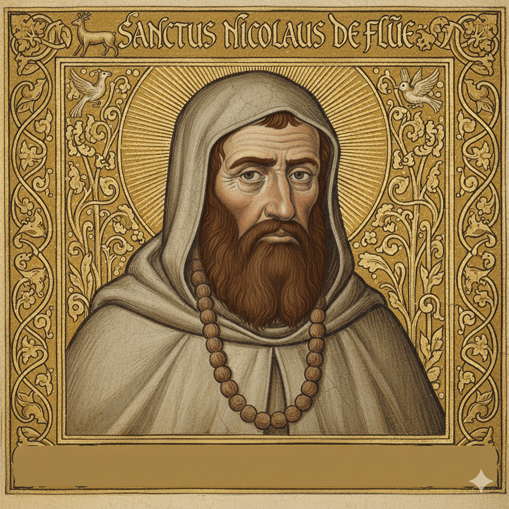 San Nicolás de Flüe (Niklaus von Flüe, 1417–1487), conocido cariñosamente como Bruder Klaus (Hermano Nicolás), es el santo patrón de Suiza. Su vida es un extraordinario testimonio de cómo la santidad se puede alcanzar en cualquier estado de vida, pasando de ser un exitoso padre de familia, soldado y magistrado a un ermitaño místico y, finalmente, un pacificador nacional.