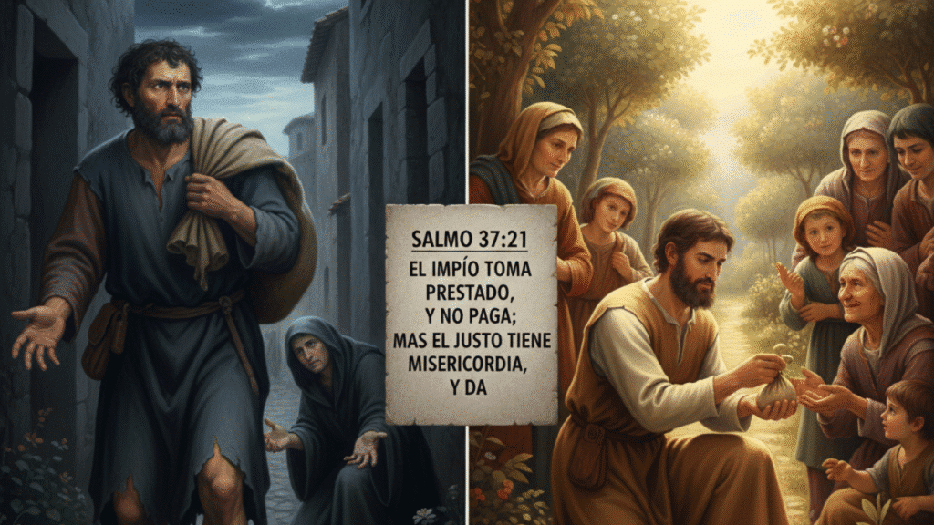 "El impío toma prestado, y no paga; Mas el justo tiene misericordia, y da."