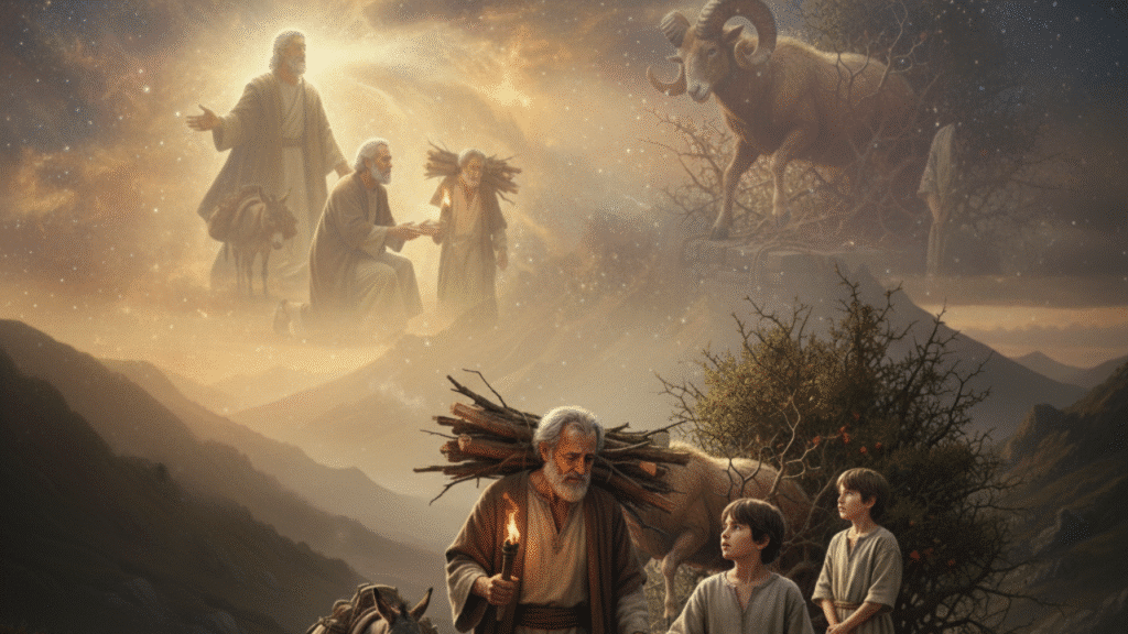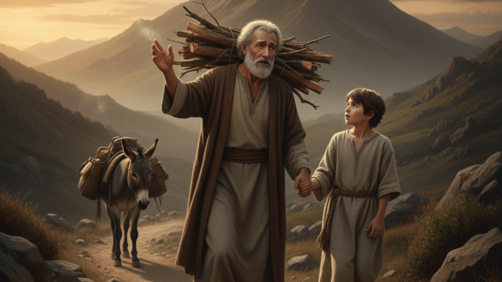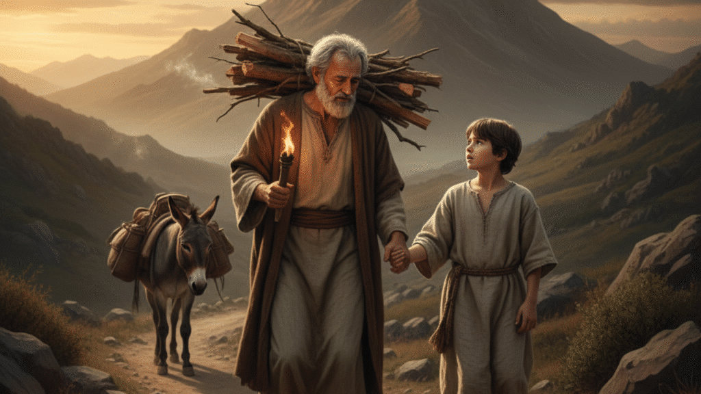 Dios le ordena a Abraham que lleve a Isaac al monte Moriah para ofrecerlo en holocausto. Abraham obedece con una fe incomprensible. En el camino, Isaac hace la pregunta desgarradora: