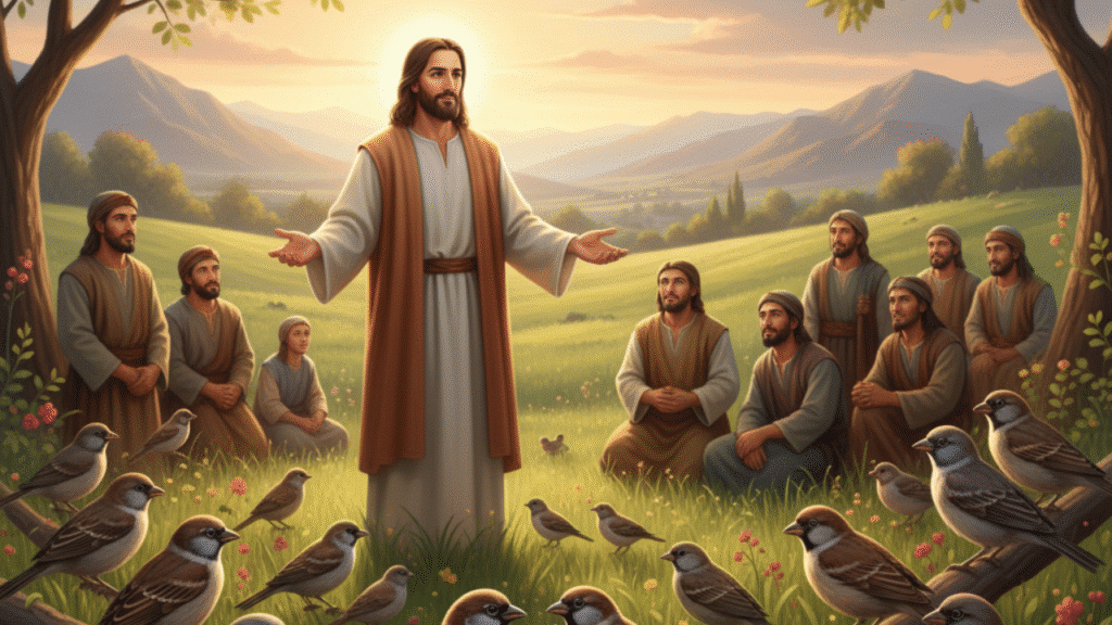 Mateo 6:26 (La Provisión Diaria):"Mirad las aves del cielo, que no siembran, ni siegan, ni recogen en graneros; y vuestro Padre celestial las alimenta. ¿No valéis vosotros mucho más que ellas?"