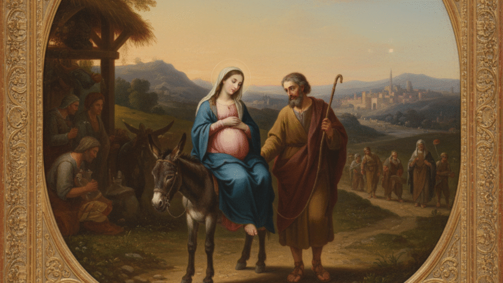 La historia comienza con un edicto del emperador romano, César Augusto, que ordenaba un censo. Por esta razón, José, que era del linaje del Rey David, tuvo que viajar desde Nazaret, en Galilea, hasta Belén, la ciudad de David, para registrarse junto a su esposa María, que estaba encinta.