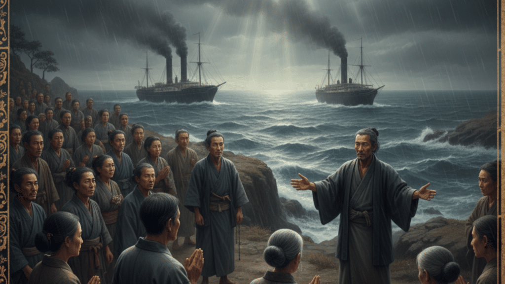 Cuenta la tradición que un mártir llamado Bastian profetizó, antes de morir, que después de siete generaciones "llegarían sacerdotes en barcos negros" y que la fe volvería a florecer. Esta esperanza fue el motor que permitió a los Kakure Kirishitan perseverar contra toda lógica humana, esperando un reencuentro que parecía imposible.