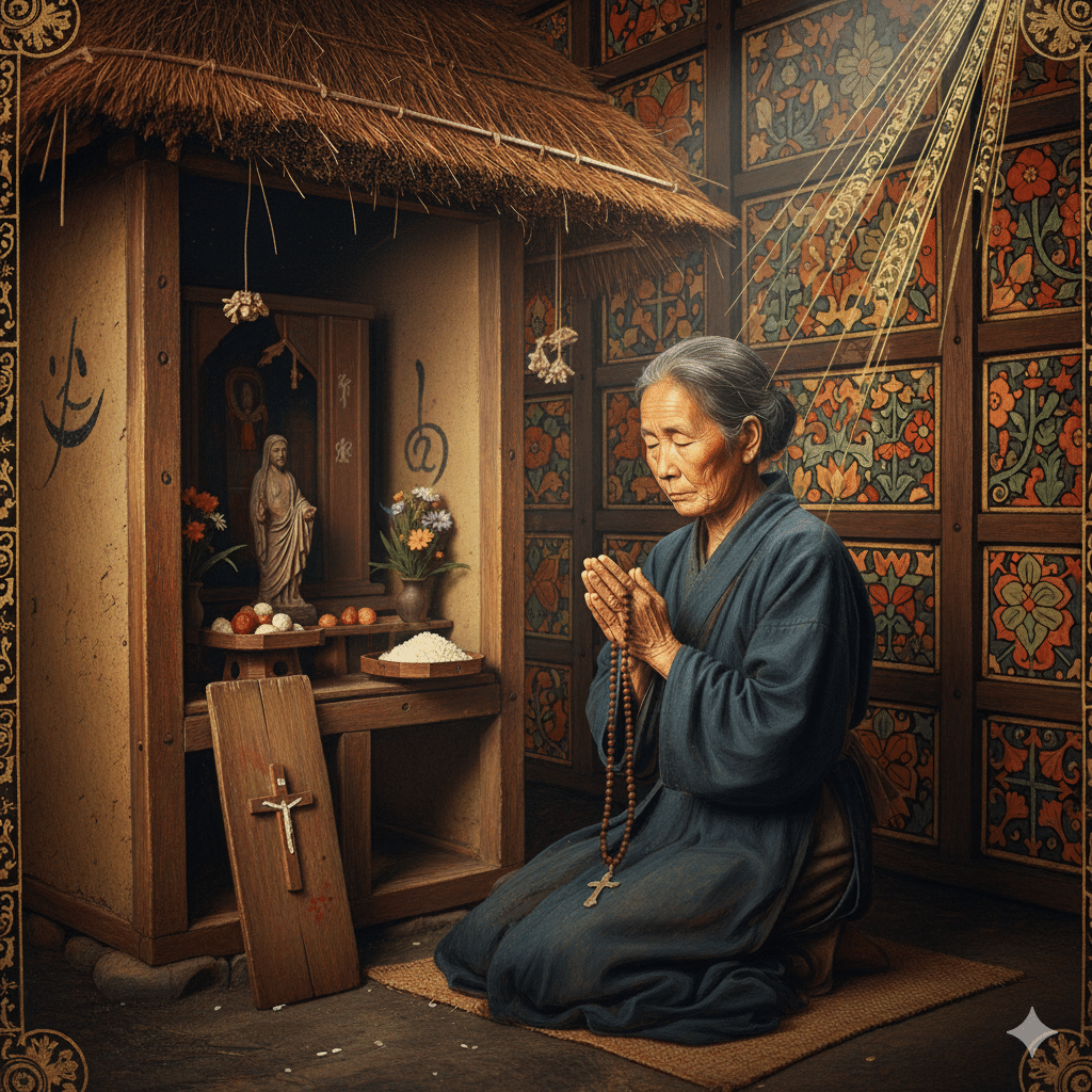 Durante más de 250 años, sin Biblias impresas y sin contacto con Roma, los Kakure Kirishitan memorizaron las oraciones en una mezcla de latín, portugués y japonés antiguo (Oratio). Esta tradición oral fue el hilo de seda que mantuvo unida la fe a través de siete generaciones de silencio y miedo constante.