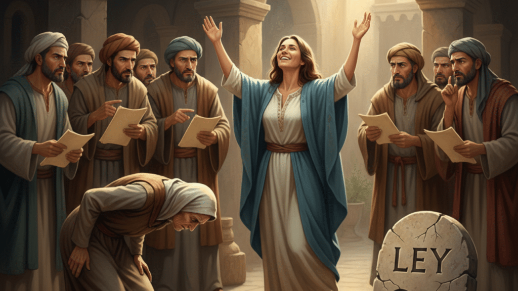Mientras la mujer glorificaba a Dios, otros se escudaban en la ley para criticar. La enseñanza de la mujer encorvada nos advierte sobre el peligro de tener un corazón "encorvado" por el legalismo, que nos impide alegrarnos por el bien del prójimo.