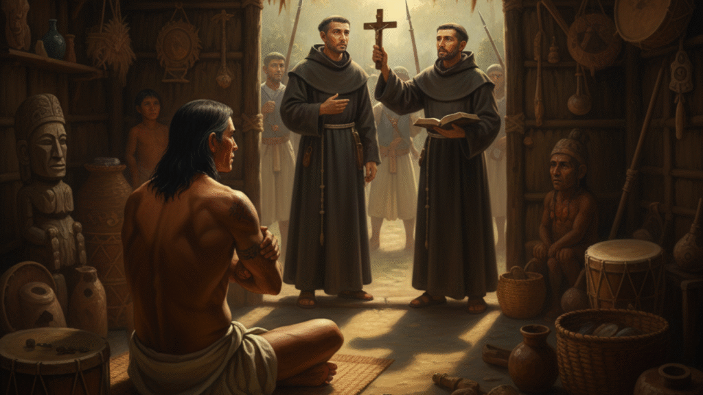 • El Contexto (1652): La colonización española en la zona de Guanare avanzaba, pero las tribus indígenas Cospes aún se resistían a la evangelización. El jefe de la tribu, el Cacique Coromoto, se negaba firmemente a la conversión.
