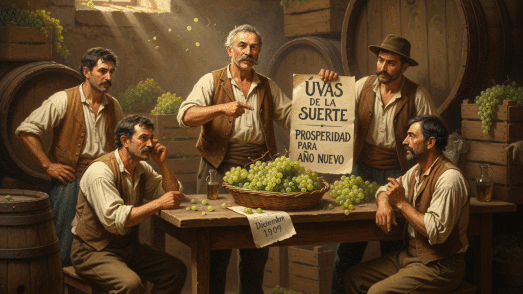 • El Resultado: La idea se popularizó inmediatamente, especialmente porque ya existía una antigua costumbre madrileña de comer algo agrio o dulce en la Nochevieja. La campaña de los viticultores la fijó en la uva.