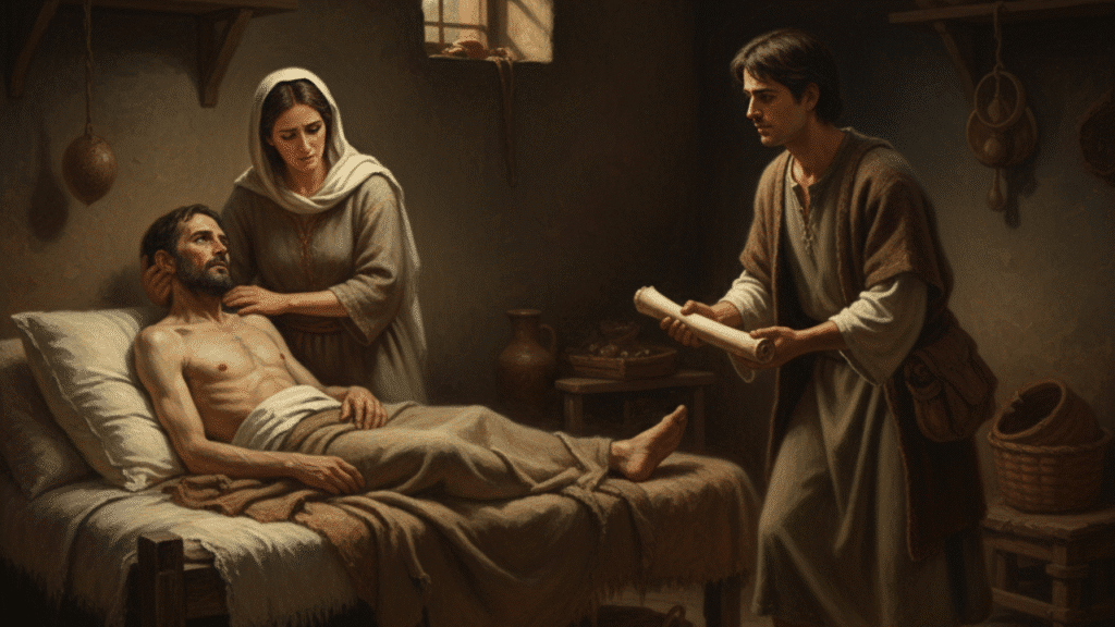 - La Enfermedad: Lázaro enferma gravemente. Sus hermanas envían un mensaje a Jesús: "Señor, he aquí el que amas está enfermo."