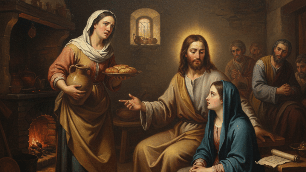 - Estudio Bíblico: Esta escena enseña que la contemplación y la escucha de la Palabra (la buena parte) deben tener prioridad sobre el activismo y la preocupación terrenal.