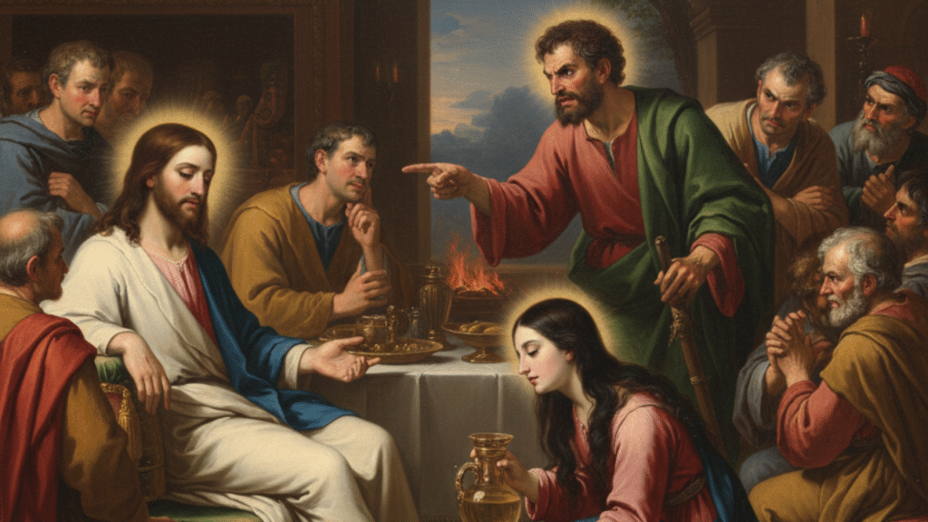 - La Crítica de Judas: Los discípulos, liderados por Judas Iscariote, se quejaron airadamente, diciendo que el perfume debería haberse vendido para dárselo a los pobres.