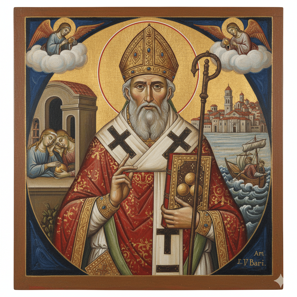 Patrono de los niños, de los marineros y de la caridad secreta. Tú que conociste la angustia de la pobreza y la alegría de la providencia divina.