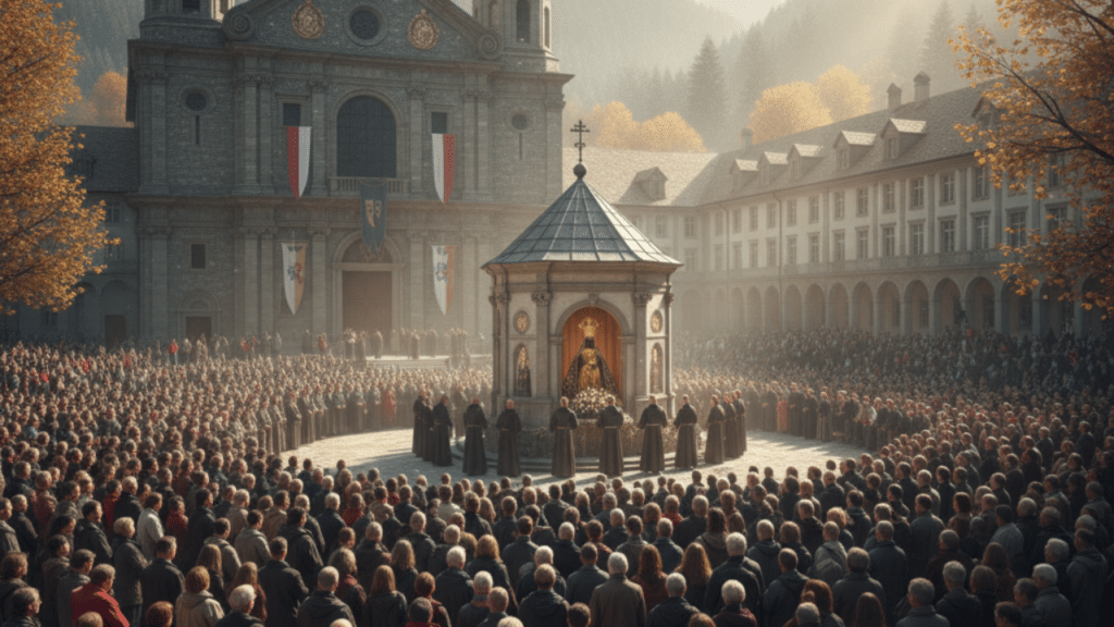 El corazón de esta devoción es la milagrosa imagen de la Virgen Negra de Einsiedeln, cuya historia se remonta a una leyenda única: la de una iglesia consagrada por los ángeles y por Cristo mismo. El santuario es un faro de fe y el sitio más visitado de Suiza, atrayendo a miles de peregrinos que buscan la intercesión de la Madre de Dios.