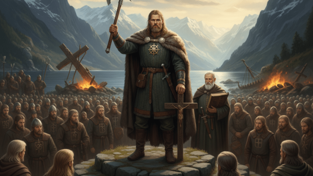 • El Regreso al Trono: En 1015, regresó a su tierra natal para reclamar el trono como Olaf II el Santo. Su objetivo era doble: unificar las tribus noruegas bajo una sola corona y erradicar el paganismo nórdico en favor de la estructura eclesiástica.