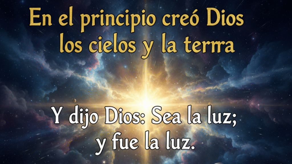 "En el principio creó Dios los cielos y la tierra. ... Y dijo Dios: Sea la luz; y fue la luz."