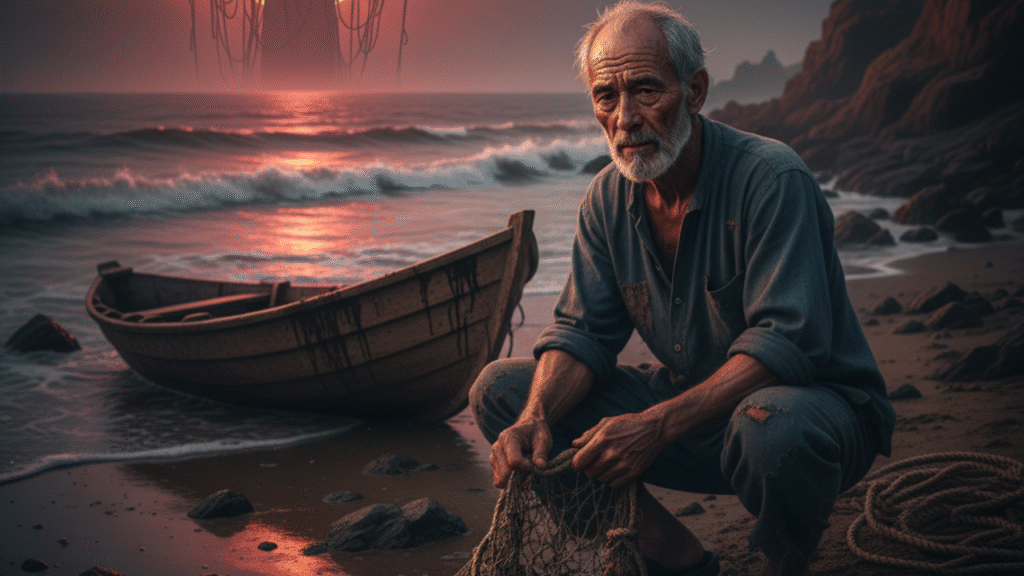 - "Esta noche la muerte me viene a buscar / Vestida de escamas y de pez plateado": El pescador siente que la muerte, como un pez gigante y mítico del río, viene por él.