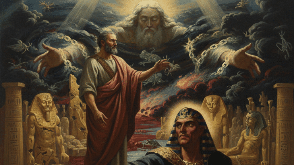 En la primera mitad de las plagas, el texto enfatiza que es el propio Faraón quien, por su orgullo y terquedad, se niega a obedecer a Dios.