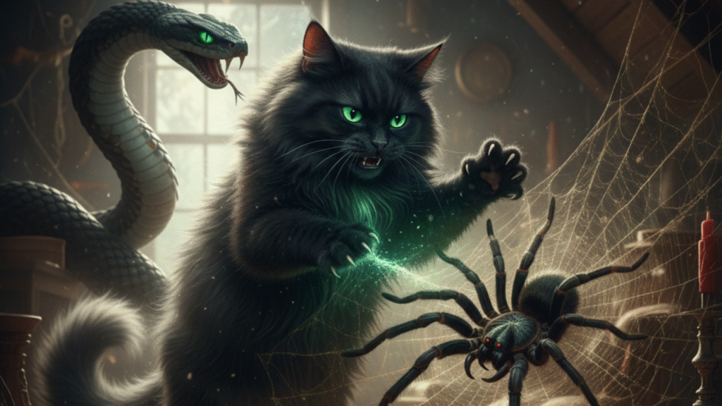 - Arañas y Gatos: El gato simboliza la intuición y la feminidad. Si el gato ataca a la araña, significa que tu propia intuición te está ayudando a defenderte de la manipulación.
