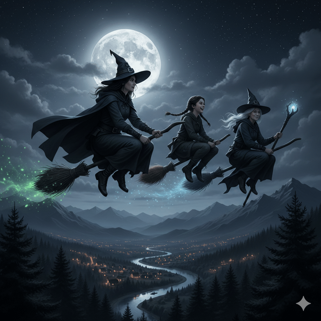 Soñar con brujas volando o en el cielo es una advertencia de que la amenaza es **generalizada, pública o difícil de controlar**. Simboliza que el ataque (chismes o envidia) se está moviendo rápidamente y te afecta de formas que no esperabas.