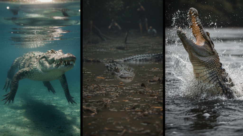 - Soñar con cocodrilos en movimiento o atacando en el agua: El peligro es activo y debes moverte rápidamente, pero con cautela.