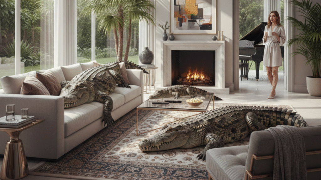 - Soñar con cocodrilos en casa (o en mi casa): La casa simboliza tu seguridad, tu familia y tu yo íntimo. El cocodrilo allí es una fuerte advertencia de peligro y traición dentro de tu círculo más cercano (familiar, pareja, o una amenaza financiera que afecta tu estabilidad).