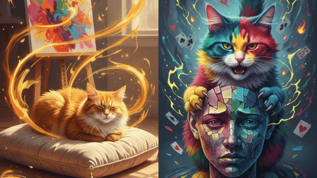 - Soñar con Gato de Colores: Ver un gato con múltiples colores simboliza la complejidad emocional o una situación que tiene muchos matices (decepción, suerte, pasión) que debes discernir antes de actuar.