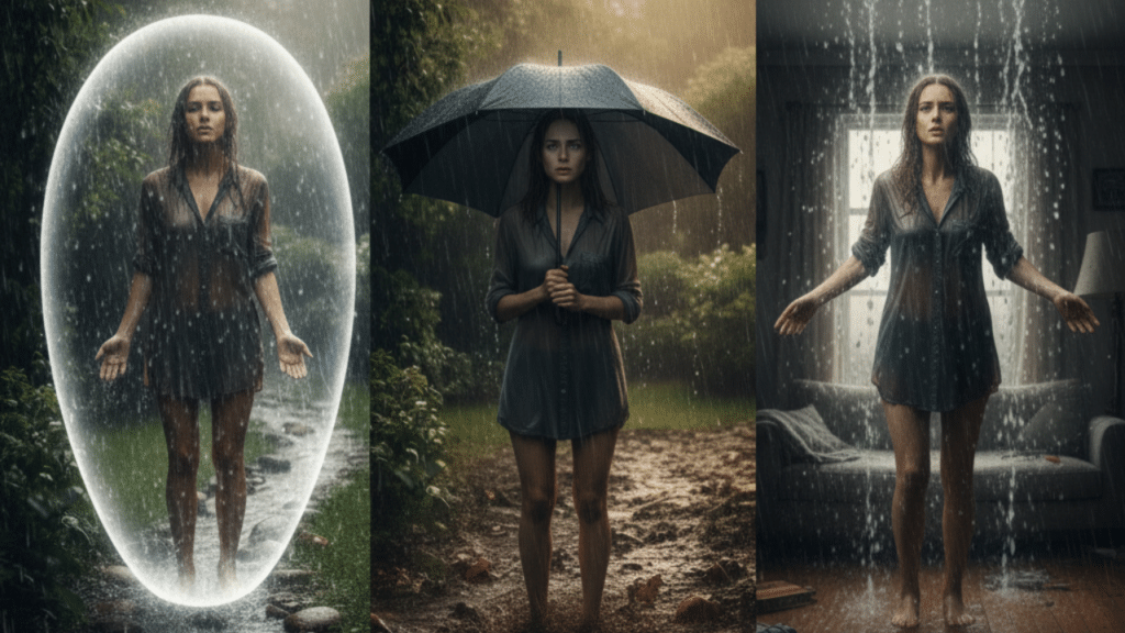 - Protección o Bloqueo: Tu reacción determina si estás aceptando la purificación o resistiéndote a ella (usando un paraguas o intentando no mojarse).
