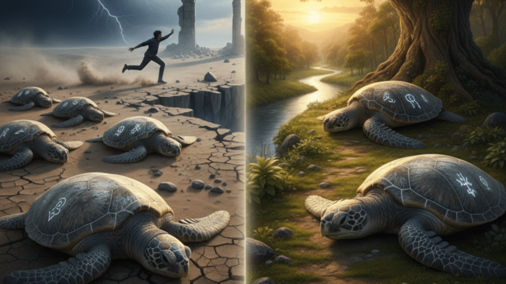 - Soñar con Tortugas Muertas: Este es un sueño de advertencia o pérdida. Simboliza que la paciencia o la estabilidad ha muerto en ti. Podría indicar que estás saboteando tu propio progreso al precipitarte o que has dejado de protegerte, dejando tu vida vulnerable. El sueño te llama a revivir la virtud de la calma.