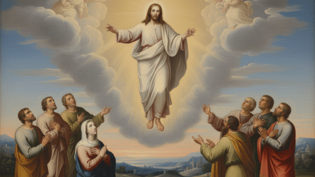 Jesús sube al cielo a la vista de sus discípulos. Meditamos en la esperanza de alcanzar algún día la morada eterna que Él nos ha preparado.