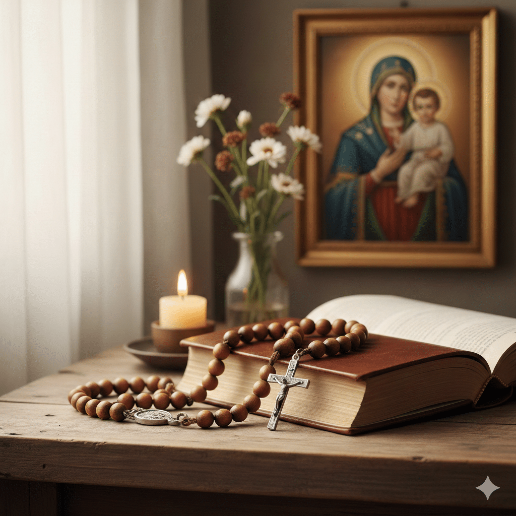 Este artículo es tu rosario de la virgen del carmen escrito definitivo. Aquí tienes todas las oraciones desarrolladas para tu comodidad, facilitando un encuentro íntimo y ordenado con la Santísima Virgen en tu hogar.