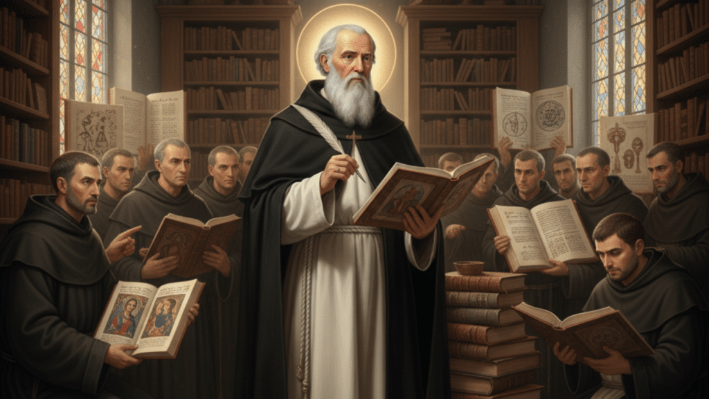 Tú que, con tu insaciable sed de conocimiento, integraste la razón de Aristóteles con la luz de la fe de Cristo, demostrando que toda verdad viene de Dios.