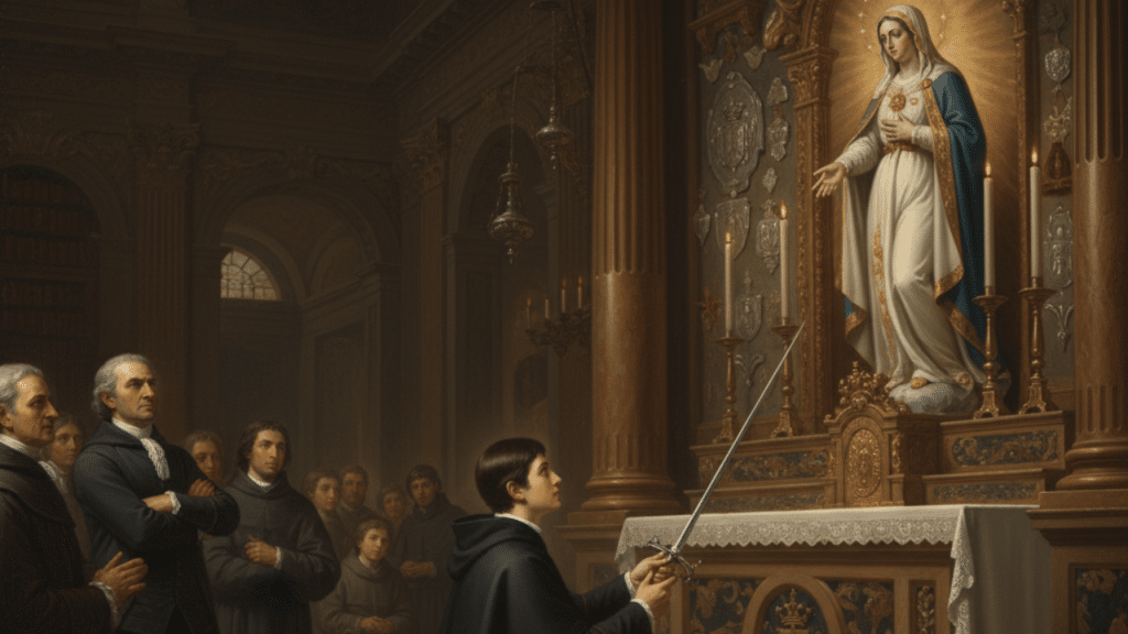 - La Consagración: A pesar de la fuerte oposición de su padre, Alfonso María de Ligorio decidió entregar su espada ante la Virgen de la Merced y comenzar su formación sacerdotal. Fue ordenado en 1726, dedicándose de inmediato a los marginados.