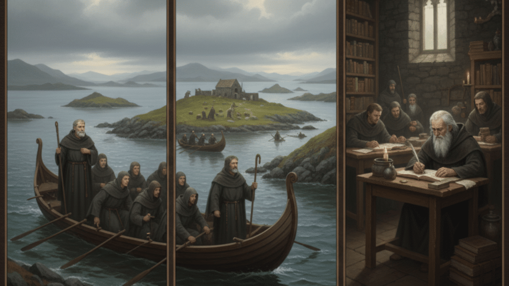 En 563 d.C., a la edad de 42 años, San Columba partió de Irlanda con doce compañeros en un currach (barca de cuero).
