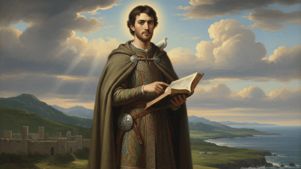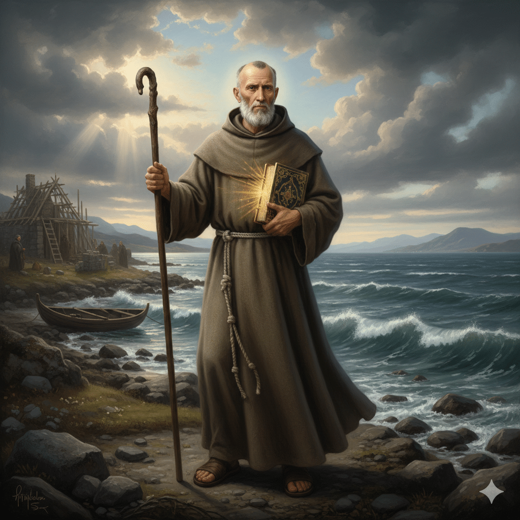 San Columba, guerrero de la fe y gran peregrino, es invocado para pedir la gracia de la misión, el coraje en el exilio y la paz de corazón.