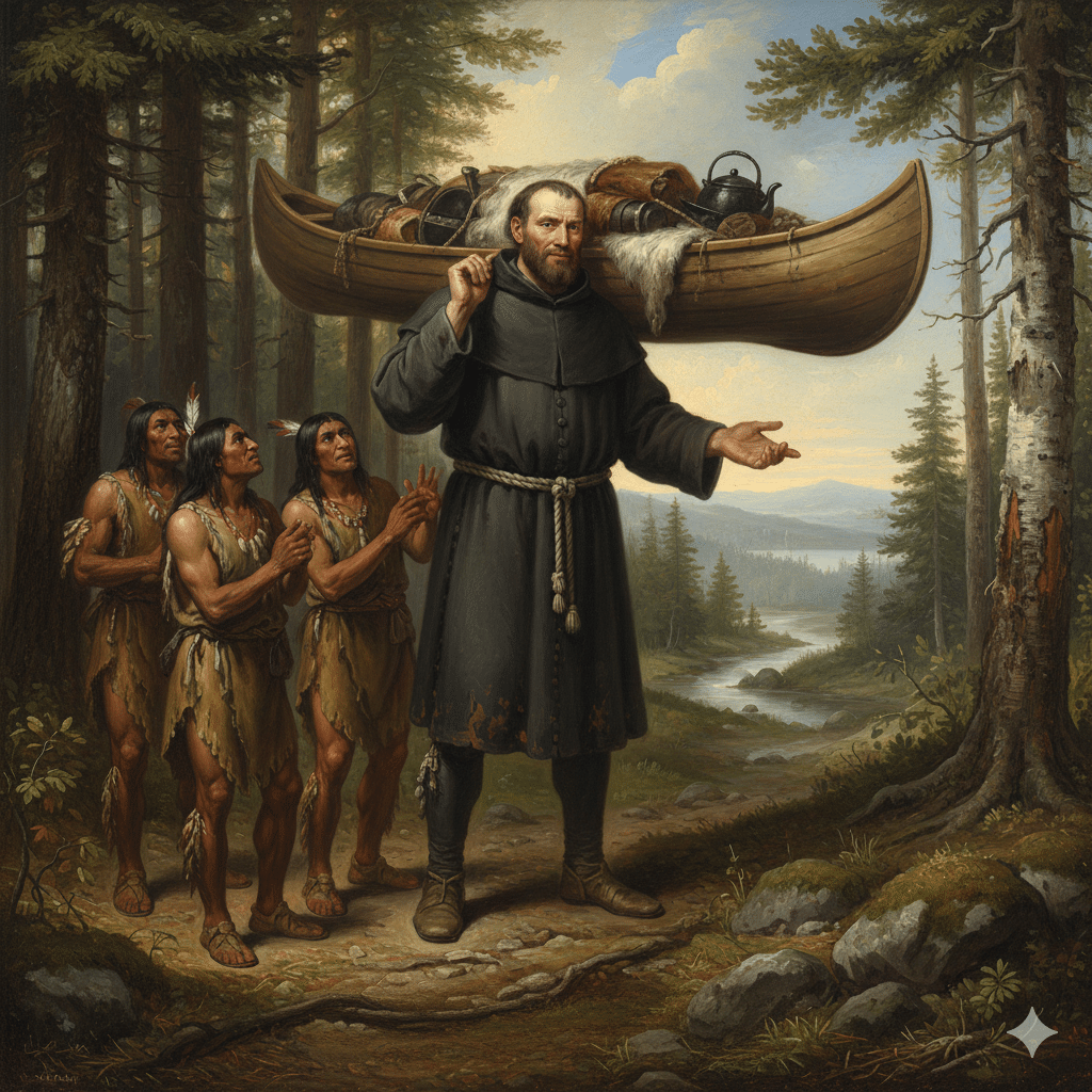 - De Normandía a Quebec: Nacido en una familia noble de Normandía, San Juan de Brébeuf entró en los jesuitas con el deseo ardiente de las misiones. En 1625, desembarcó en Quebec, iniciando una aventura que lo llevaría a internarse miles de kilómetros en los bosques vírgenes del continente.