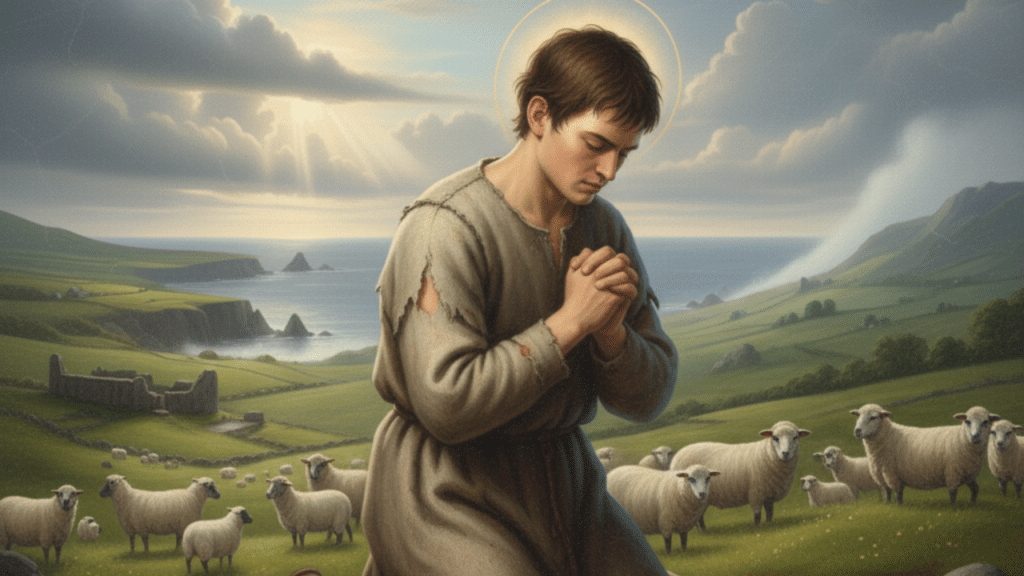 • La Esclavitud: A los 16 años, fue secuestrado por piratas irlandeses y vendido como esclavo en Irlanda, donde pasó seis años cuidando ovejas en el campo. Fue en su cautiverio donde encontró la fe y comenzó una vida intensa de oración.