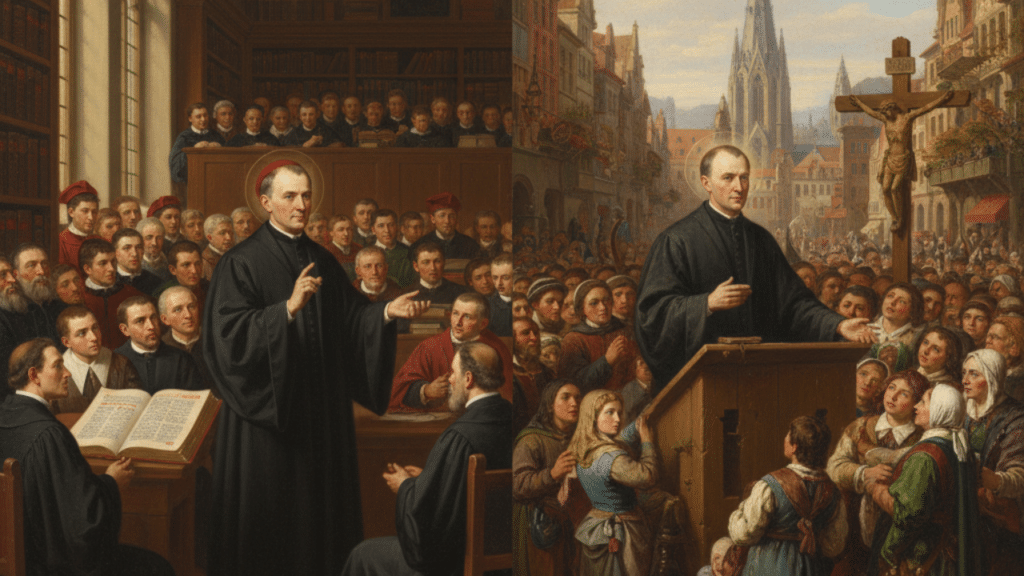 - Profesor y Rector: Ocupó la cátedra de teología en la Universidad de Ingolstadt y más tarde se convirtió en su rector. También fue fundamental en la fundación y reforma de universidades clave como Viena y Dillingen, asegurando que los futuros sacerdotes y líderes laicos recibieran una sólida formación católica.
