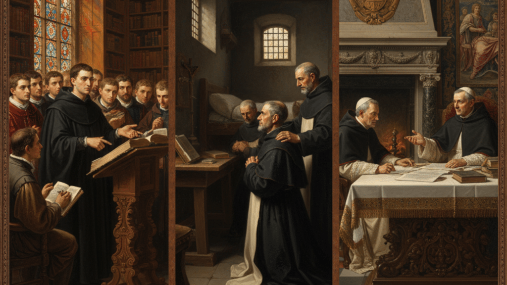 - Vocación y Dominicos: A pesar de su éxito académico, sintió el llamado a la vida religiosa y se unió a la recién fundada Orden de Predicadores (Dominicos) en Barcelona, a la edad de 47 años, eligiendo la austeridad y el estudio.