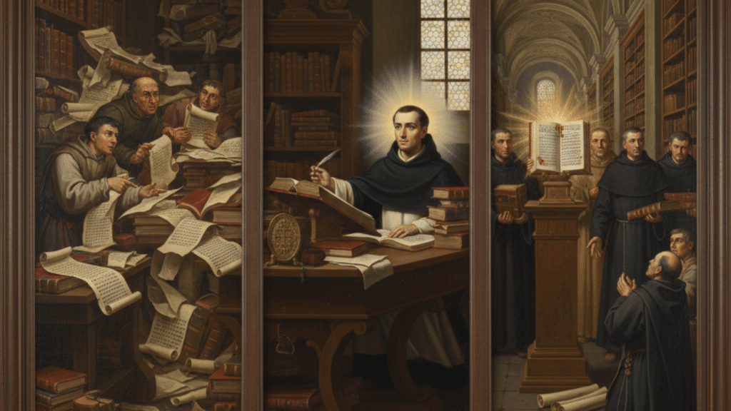 - La Solución: Por orden del Papa Gregorio IX, San Raimundo de Peñafort pasó años en Roma, recopilando y organizando sistemáticamente todas las leyes de la Iglesia.