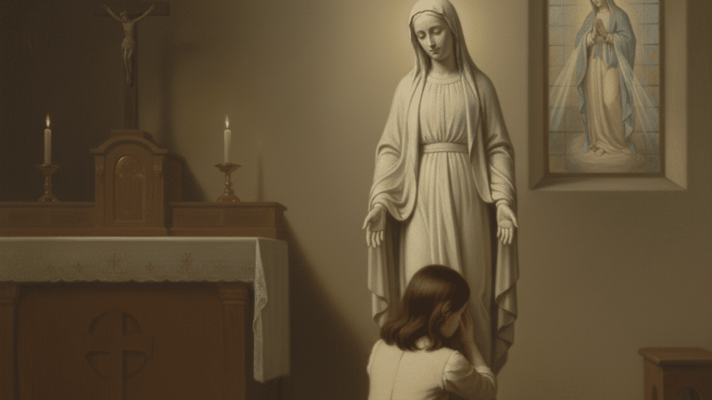 • Una pérdida temprana: A los nueve años, tras la muerte de su madre, la pequeña Catalina abrazó una estatua de la Virgen y le pidió que fuera su nueva madre. Este gesto definió toda la historia de Catalina Labouré, sellando un vínculo filial que duraría toda su existencia.