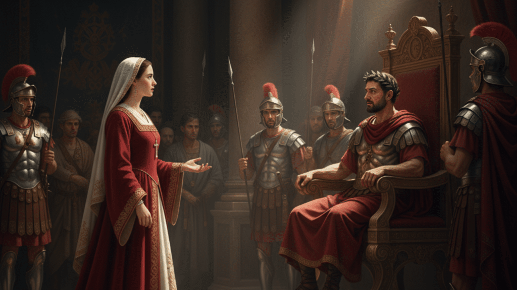 - El Desafío al Gobernador: Cuando el gobernador Daciano llegó a Barcelona para aplicar los edictos imperiales contra los cristianos, la joven Eulalia de Barcelona no se ocultó. Con una madurez asombrosa, se presentó ante él para reprocharle su crueldad y defender la verdad del Evangelio.