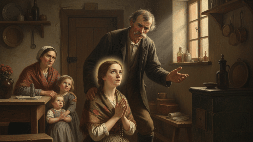 - Nacimiento (1905): Helena Kowalska nació en Głogowiec, Polonia, en una familia campesina pobre y piadosa. Fue la tercera de diez hijos.