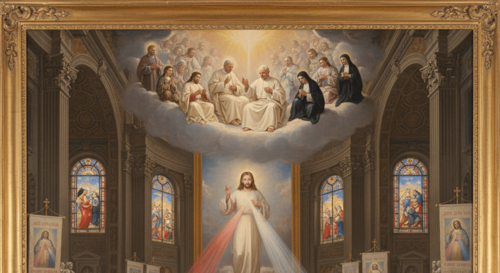 - Canonización: Tras un largo proceso, y con el impulso del Papa Juan Pablo II (quien tenía una profunda devoción por el mensaje y por la santa polaca Faustina Kowalska), fue: