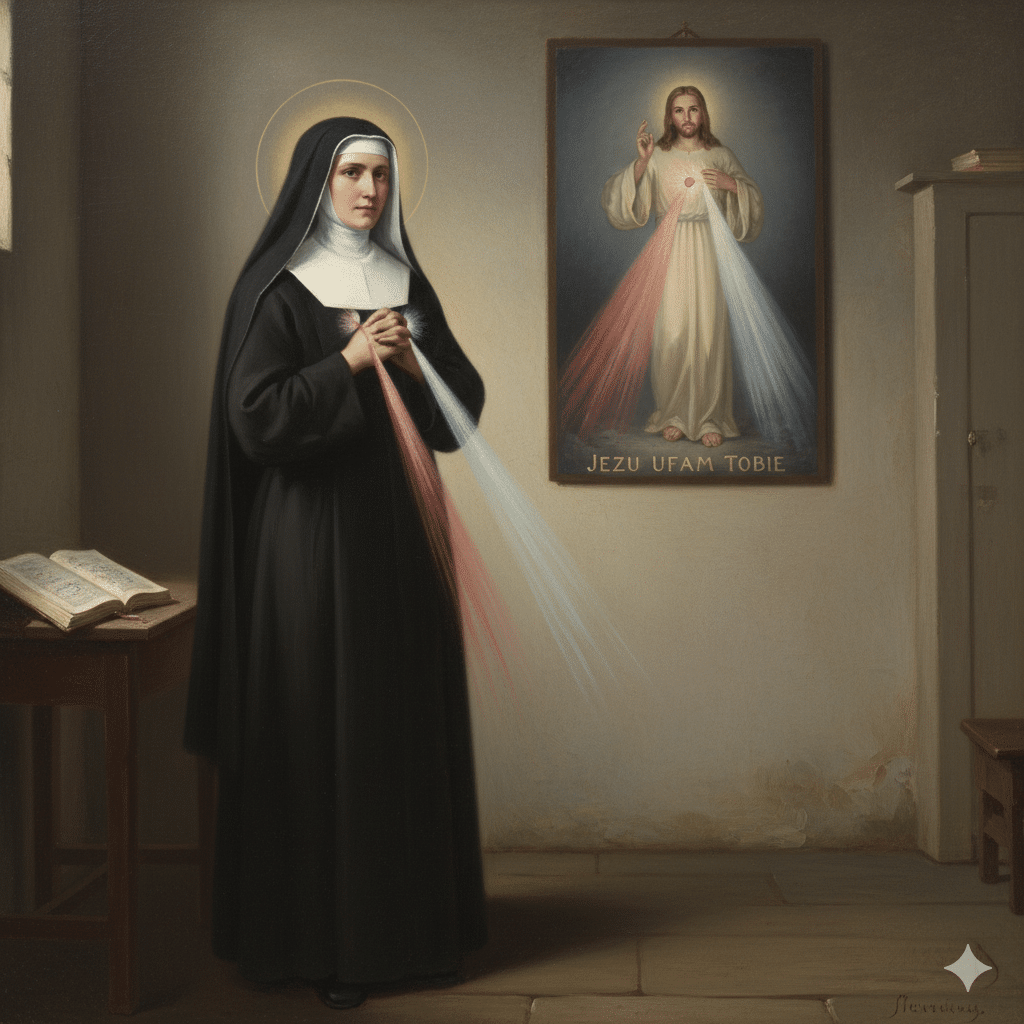 - La Imagen: El 22 de febrero de 1931, en su celda en Płock, Jesús se le apareció, pidiéndole que pintara una imagen de la Divina Misericordia. Jesús le dijo: "Pinta una imagen según el modelo que ves, y firma: Jesús, en Ti confío."