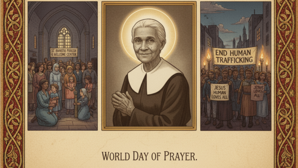 Santa Josefina de Bakhita, intercesora de los oprimidos y modelo de perdón heroico, es invocada para pedir la liberación de todas las esclavitudes, la sanación de traumas y la paz en el continente africano.