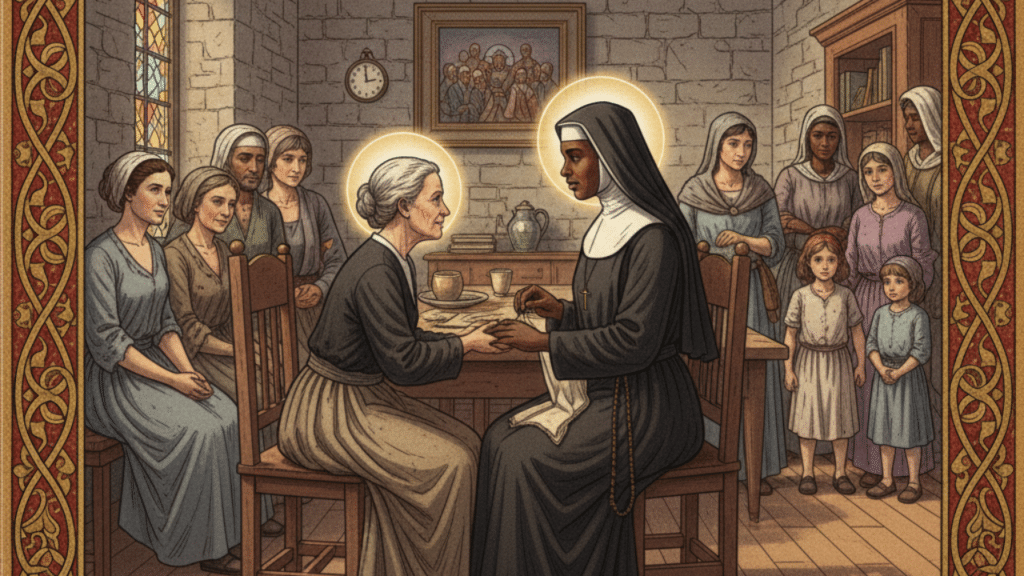 • Sor Bakhita: En 1893, entró en el noviciado de las Hijas de la Caridad en Venecia. En 1896, emitió sus votos, convirtiéndose en una religiosa dedicada a las tareas más sencillas: cocina, bordado y, sobre todo, la portería.