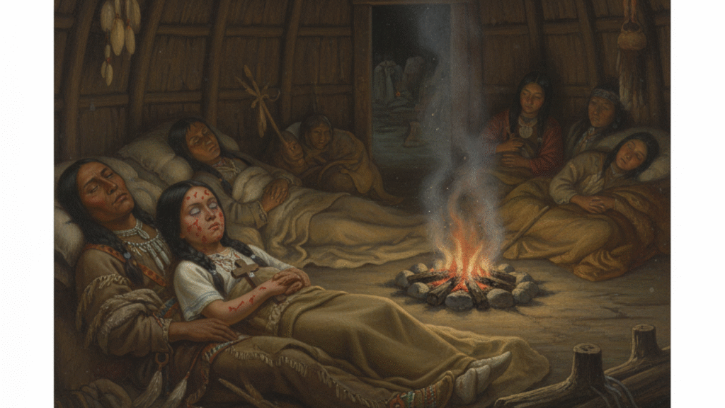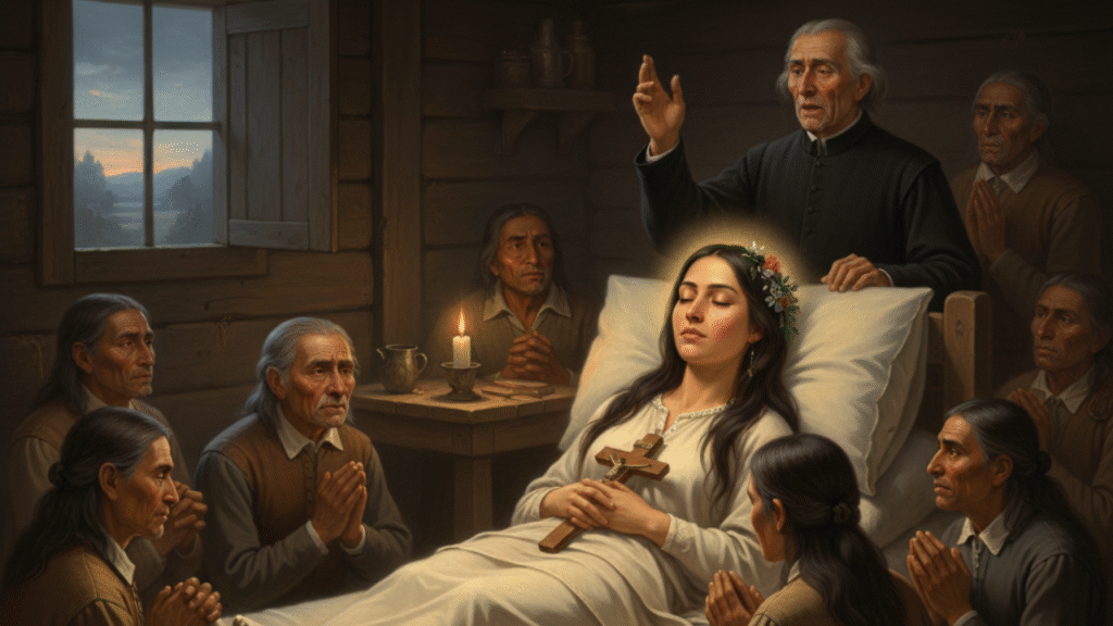 - La Consagración: Kateri hizo un voto de virginidad y dedicó su vida a la oración y la ayuda a los enfermos y ancianos de la misión de Kahnawake. Su devoción a la Eucaristía era legendaria.