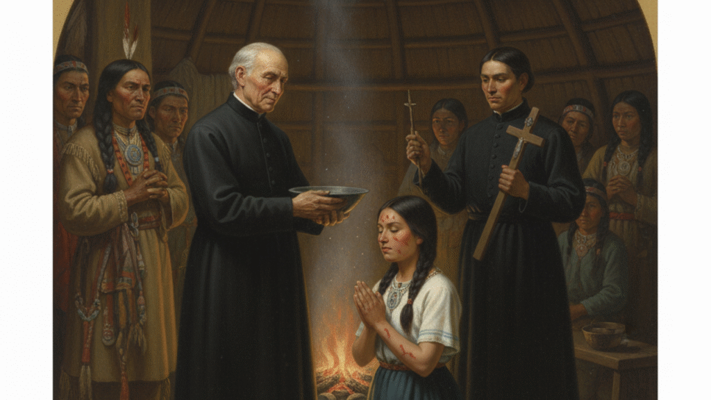 - La Conversión: Kateri fue criada por sus tíos, quienes eran hostiles al cristianismo. Los misioneros jesuitas (llamados "Sotanas Negras") visitaban su aldea, y a los 19 años, Kateri fue bautizada, tomando el nombre de Catalina (Kateri en iroqués).