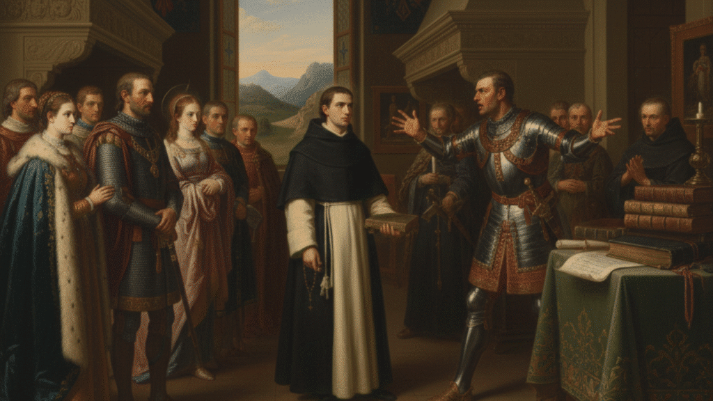 • Vocación y Conflicto: A pesar de la oposición feroz de su familia, quienes querían que se dedicara a la política o a una orden más prestigiosa (como la de los benedictinos), Tomás decidió unirse a la recién fundada y mendicante Orden de Predicadores (Dominicos).