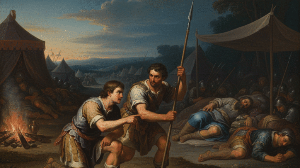 • Se Infiltró con David: Fue el único lo suficientemente valiente para colarse en el campamento de Saúl con David (1 Samuel 26).